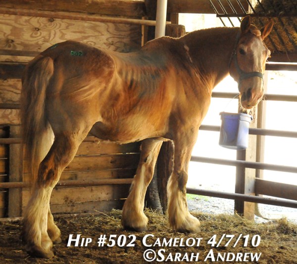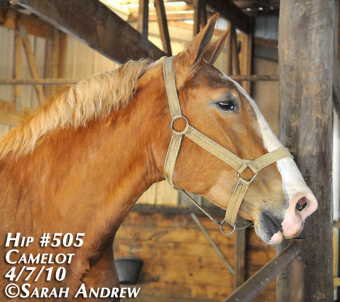 #’s 504 & 505 – I THINK these were the ones that were supposed to be Shire-X’s. Didn’t see it–Looked like big, roman-nosed Belgians. This TEAM was led thru together. Both were ‘funny’ behind. Meaning conformationally both were light in the hindquarters in comparison to the rest of their bodies, and they seemed to move and stand with a ‘crouch’ behind. Would be a shame to split them up.