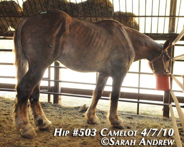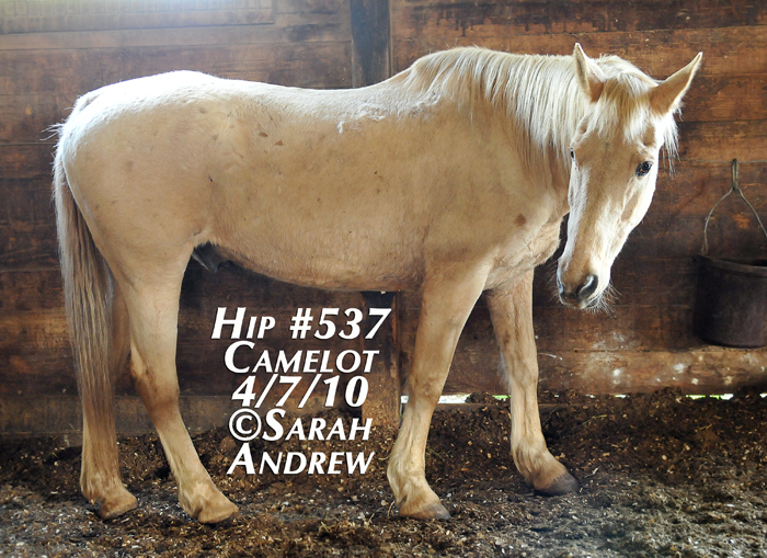 The following is a list of horses available for purchase at Camelot Auction in Cranbury, New Jersey. You can purchase these horses until noon on Saturday (April 10, 2010). The descriptions are © Helping Hearts Equine Rescue and the photos are © Sarah Andrew. You may forward and cross-post this information to any websites that may benefit these horses. For a current list of available horses (this list is as of Thursday night) and to learn more about the auction process and how to purchase a horse, please visit this site.