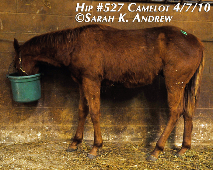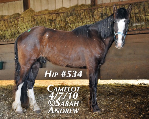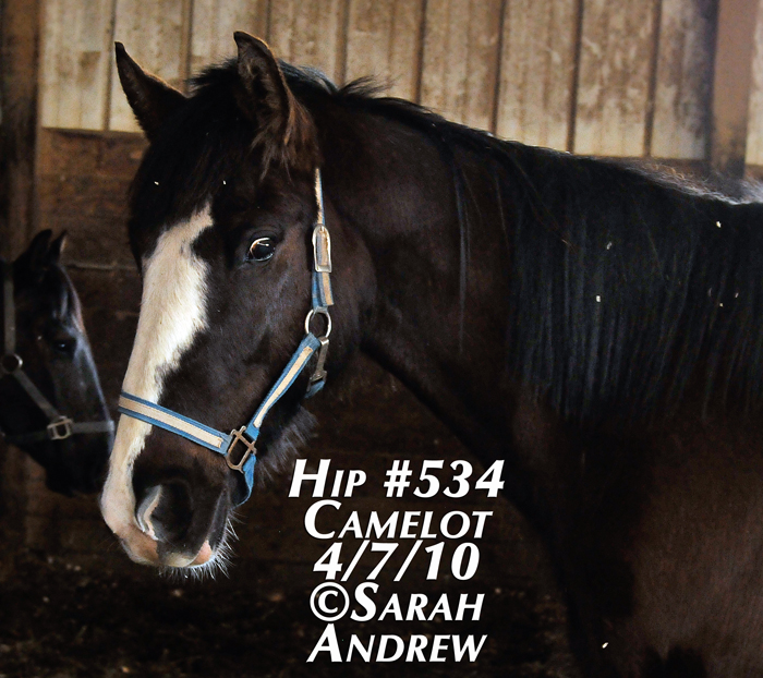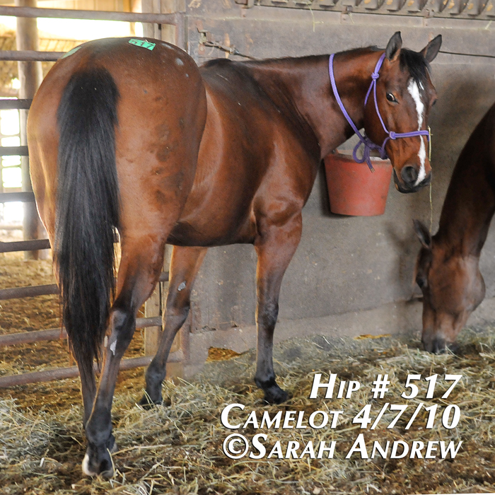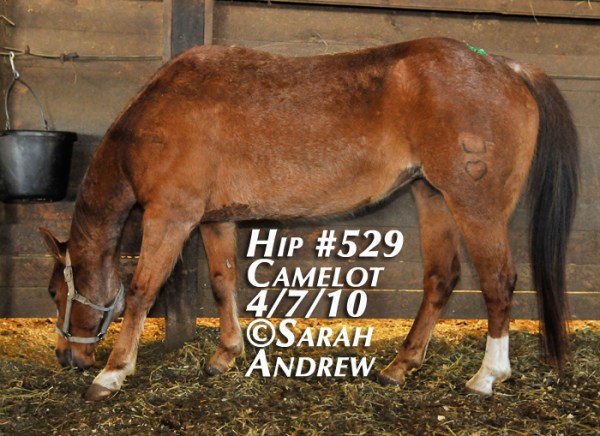 #526 – Age only announced as “baby” — Dark Bay w/star & snip. gelding, pretty face. 15.3, very tucked up, needs of bit of weight, led thru. . . $125.00