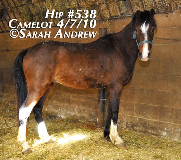 #538 – fine-bodied Bay Pony Gelding, with blaze, the last one led thru, no-one left. supposed to be 8 yrs., 12.2 – 13 hh. Sweet and Scared. Rider led him thru, said he was “green to ride” . . $100.00