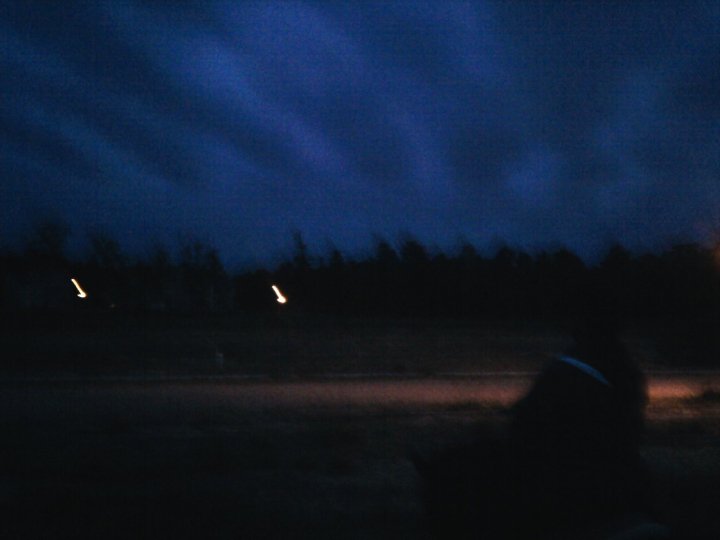 As we rode back, it was getting dark (see photo below). Wizard did one more round, fancy jump over a stone curb, much to my surprise, but he looked and felt great as he hopped it. We took the wooded way back to the barn, only crossing one road. Wizard walked on sidewalks, up and down curbs, and stood nicely at the road crossing.