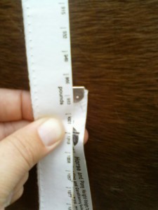 Weight as of 5/15/12: approx 975 pounds- definitely underweight for his size. Since he has gotten on more pasture and has settled in more, his weight is FINALLY increasing again. I’m hoping that the UlcerGard is helping as well. I can’t believe how quickly he stressed the weight off when we moved.